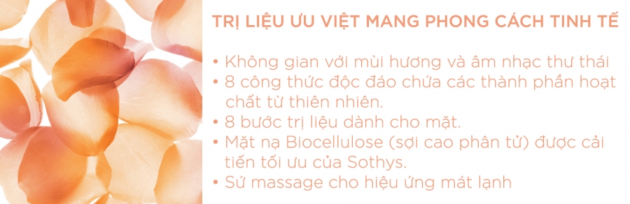 Một khái niệm mới cho làn da trẻ mãi không tuổi với liệu trình độc đáo tối ưu giúp bạn tận hưởng cùng lúc cảm giác thư giãn và trải nghiệm công nghệ tiên tiến hàng đầu trong không gian với mùi hương và âm nhạc thư thái. Với 10 kỹ thuật và phương pháp độc quyền MỚI dành cho da mặt của Sothys, Liftoplastie™. Khách hàng sẽ cảm nhận được làn da căng đầy chỉ ngay sau trị liệu.